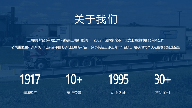 上海鷹牌衡器有限公司是上海衡器總廠轉(zhuǎn)制的企業(yè),前身是上海衡器總廠,創(chuàng)建于1917年是地磅等衡器設(shè)計(jì)、制造廠家,主營電子地磅、電子秤以及地磅維修2002年因體制改革,改為上海鷹牌衡器有限公司!